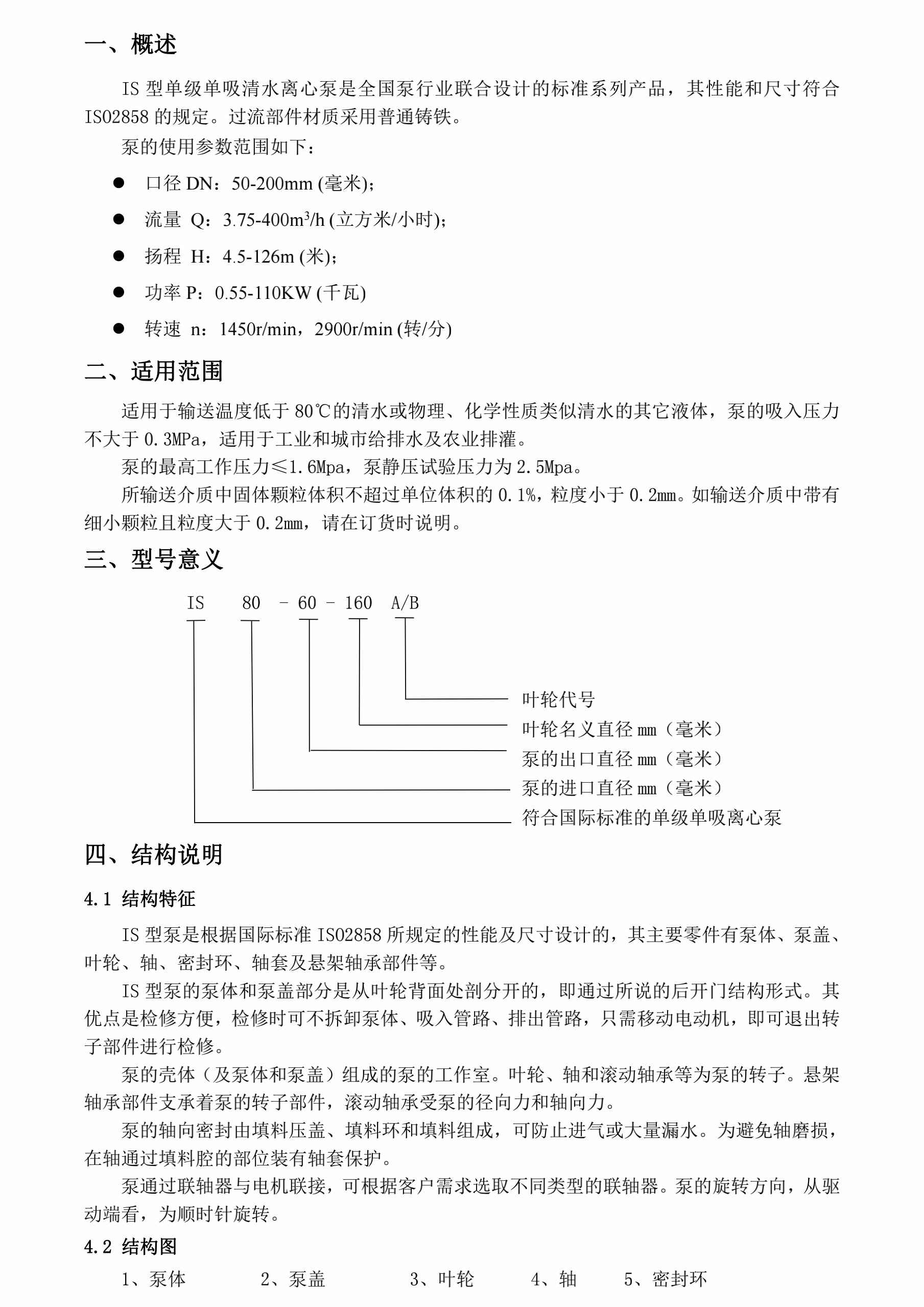 IS型单级单吸清水离心泵